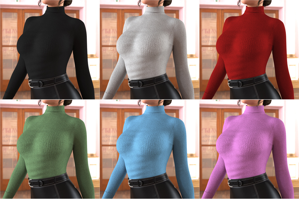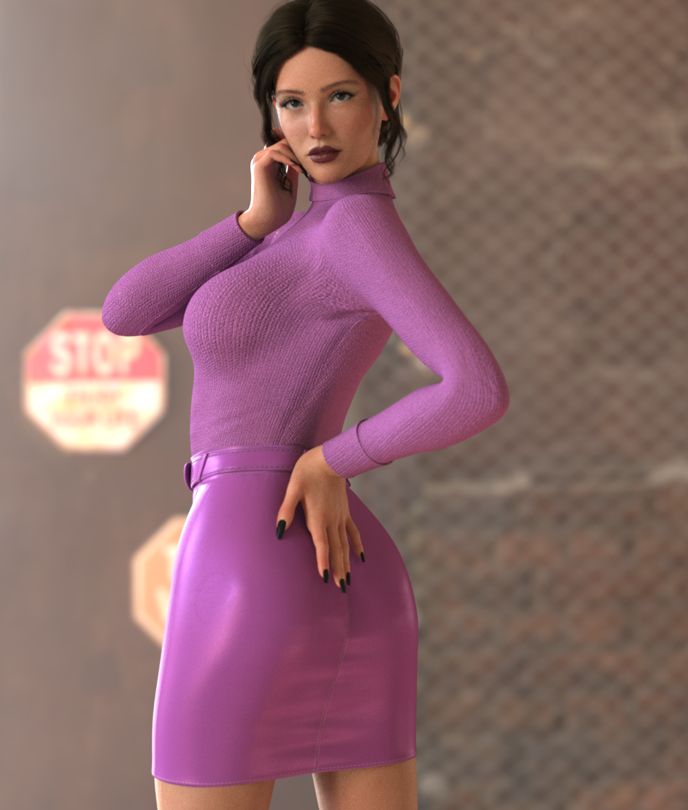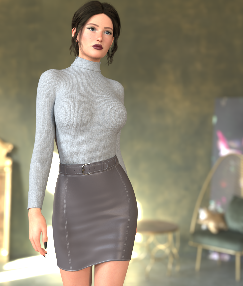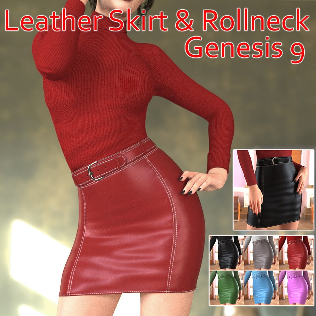 Here we have a leather skirt with belt and rollneck top for Daz Genesis 9 figure in Daz Studio.