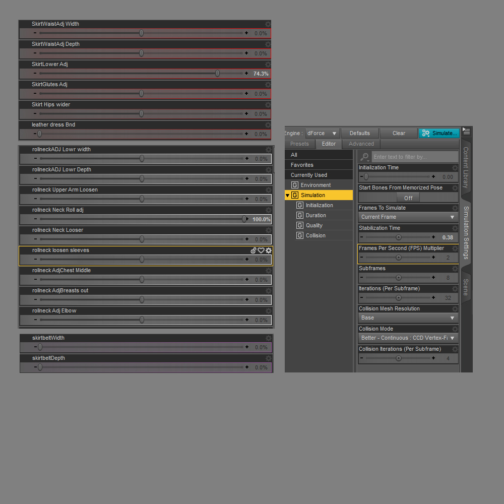 Adjustment morphs (found under Parameters>General (see images))